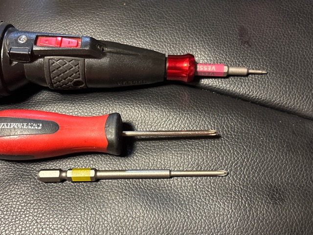 わたくし ) まぁ、ジャパンカップでのブレーキの失敗を経て今回の買い物に繋げましたよ。 妖精さん ) なぜ持っていなかったのでしょう?こういう品物、お好きではありませんか? わ ) まぁ、ブレーキを細かくチェックする癖がついていなかった、そういう事なのでしょう。いつもツメが甘いので。 よ ) 気づいただけでも良しとは致しませんよ?ところで、最初の写真はドライバーとビットですよね、ミニ四駆に電動ドライバー、舐めませんこと? わ ) もちろんナメるよ、だから使い方には気をつけてください。ということをアピールしたくて、このような記事をあげてみる。 よ ) だいぶネジナメたようですね、使えなくなったネジがゴミ袋に…。 わ ) そうだね、工具なんだから、使い方には気をつければ便利なんだけど。 よ ) それで、今後の予定は? わ ) 明日はテストに行きたいので、夜ふかしはほどほどにして寝るよ、中国製のウォークマンにMEGも入れたし、枕も柔らかいものを新調したからね。 よ ) よくわかりませんが、まぁ頑張ってくださいまし。