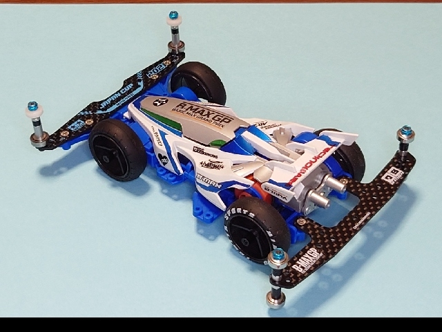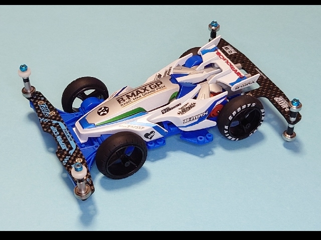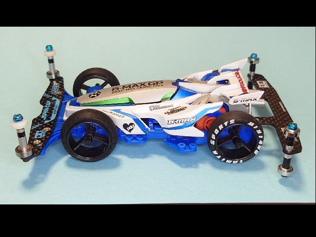 第四回 #MINI4WD企業対抗選手権のドラッグレース用に制作 とにかく軽さを重視して ・VZシャーシ ・ボディはレイスピアー(走行時はキャノピーとウイングをパージ) ・走行時はゴムキャッチャー ・ローラー以外は金属ベアリング不使用 で、電池なし車重80g切りました😁 B-MAXのドラッグレース楽しいです!
