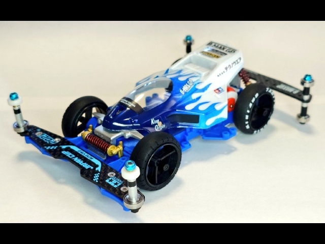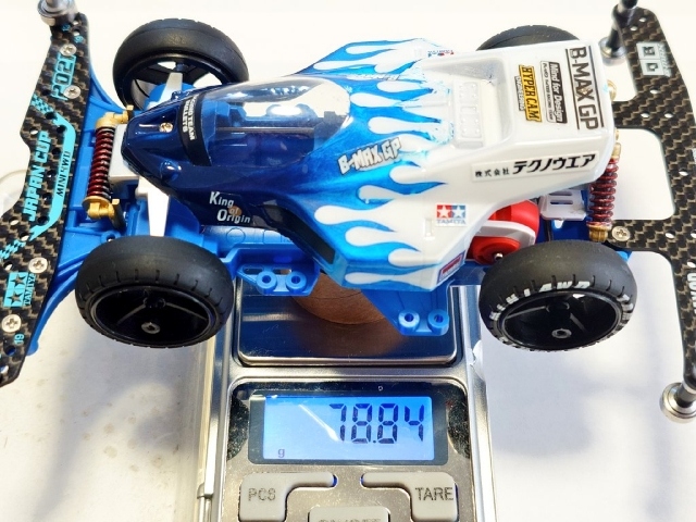 第四回 MINI4WD企業対抗選手権のドラッグレース用に制作 とにかく軽さを重視して ・VZシャーシ ・ボディはレイスピアー(走行時はキャノピーとウイングをパージ) ・走行時はゴムキャッチャー ・ローラー以外は金属ベアリング不使用 で、電池なし車重80g切りました😁 B-MAXのドラッグレース楽しいです! 2026/04/05 追記 第5回MINI4WD企業対抗選手権に向けて、より軽量化を目指して今年から解禁されたポリカボディに換装 おそらく最軽量のサンダーショットを載せましたが、結果は変わらず😱 逆にレイスピアーが凄すぎるのか!?
