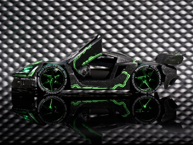イグニシオンを黒緑カラー、極力実車っぽく仕上げました フロントエアロ追加、跳ね上げ式ドア ヘッドライトはLEDで点灯します 撮影は知り合いの方に協力頂きました 2025JCコンデレ4 XLARGE賞受賞
