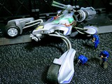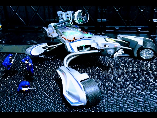 バイスイントゥルーダーの手足伸ばしたらどうなるだろう…あ、カッコいいわ それなら武装載せたら…という感じで近未来兵器っぽくしてみました スプリング以外はすべてミニ四駆パーツです!どこからどう見てもミニ四駆ですよね??笑 コンセプトが小学生の発想ぽいと勝手に思ってたので名前も小学生センスの名前にしてみました笑 マーキングと塗装はオリジナルそのまま この悪役デザインが好きなのと、オリジナル塗装にするとミニ四駆成分が失われると思いまして…笑 フィギュアはタミヤの1/48ソ連兵を 近未来っぽさを出したかったので青色で塗装しました これはZOIDSの箱写真とかにいる兵士をイメージしてます笑 あっちもタミヤ製のフィギュア使ってる感じのポーズ多いっすよね JC2025コンデレ1 出品(受賞なし)