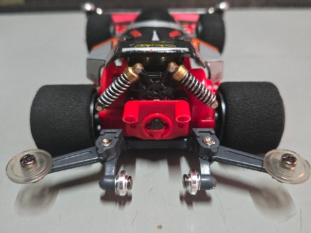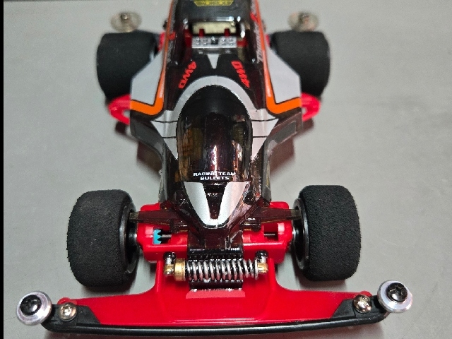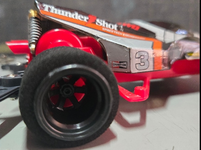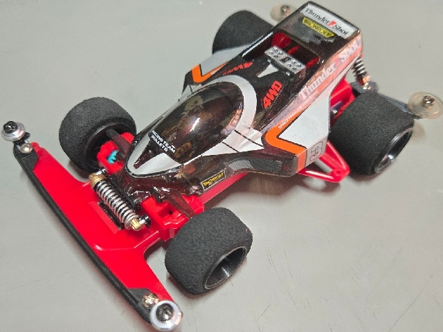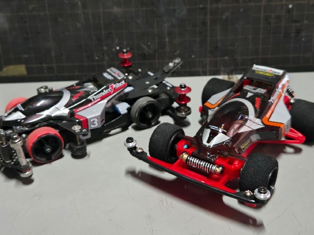 80sレジェンドマシン。 (売れたで言えばそりゃアバンテなんでしょうがw) ミニ四駆史で最初のブラックスペシャル! 今回赤タイプ3が手に入ったので当時風カスタムに仕上げました。 ボディはサスペンション塗装にクリアコーティング 斜め後ろからワイドホイールの深リム6スポ見ながらのCHAMPIONロゴがクソカッコいいです。 4:1コンペティションギアが球数ないわの高騰だわで勝手に騒いでますw またそれも付加価値マシマシでタイプ3を楽しめる要素と思うしかないですね 当時物サンショでのポイントはモーター好きの皆様としてはやはり"CHAMPION"と"MONROE"のロゴなのではないでしょうか!? もーー、そそりますね! 後にも先にも純正ステッカーでこれは当時サンショだけかと、、 近年のカーボン風ボディや、クリアボディの純正は ウイングは"HYPERCAM ENGINEERING" サイドは"FREE FROFILTER S"に変更されてます。 恐らく大人の事情があったんでしょうねw クリアボディにスモーク塗装し、カーボン風ボディのステッカーを貼って1部塗装したブラックSP風も添付してますので比較してみて下さいませ。 キットはタイプ1なので需要無さすぎな中、再販はされる時が来るのでしょうか!! (今後再販無しでレア車の1台でいてほしい気持ちもある、、)