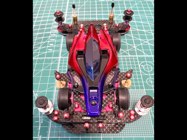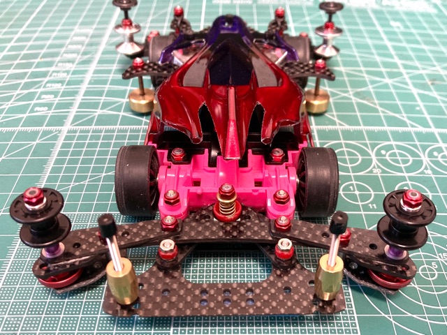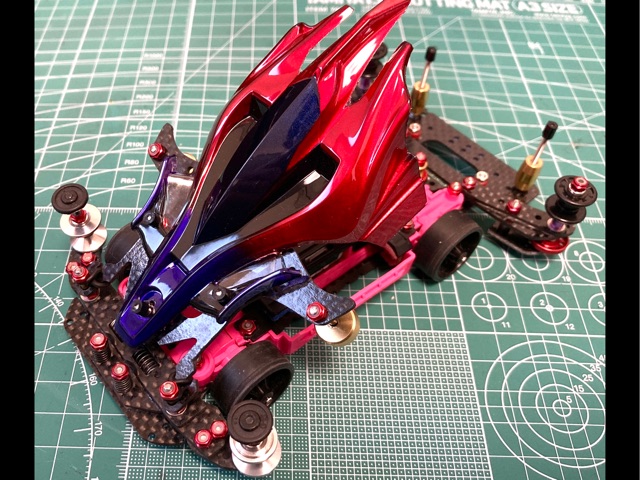 ピンクのmsシャーシに合わせてピンクにしようかと思って色々思案した結果、なぜか赤+紫になりました