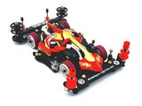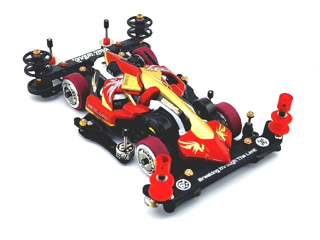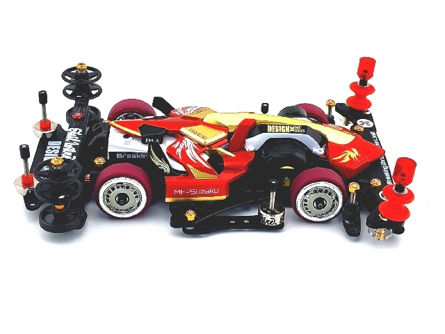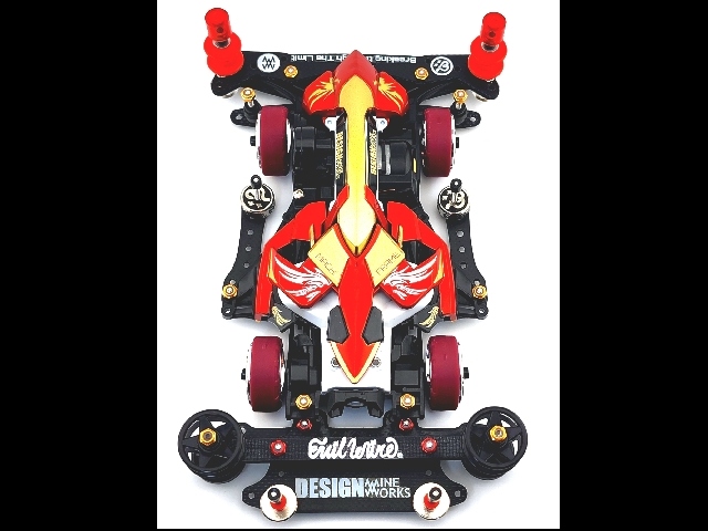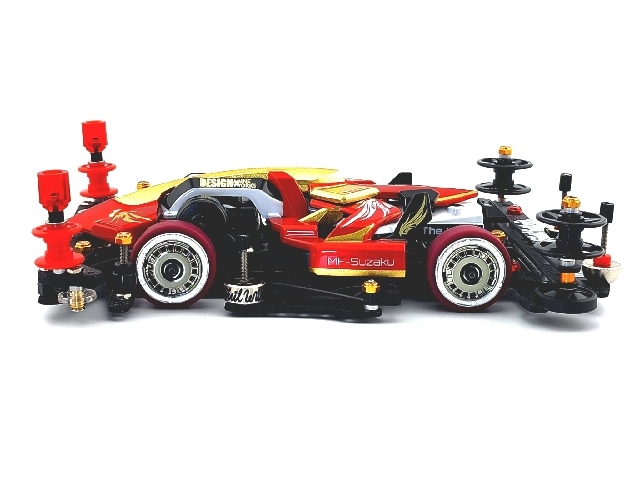 燃え上がるような赤にラメ感の強きラフゴールドをあしらい、白でコントラストのバランスをとりました。タイヤは逆ばきしつつ、エモいホイールキャップでディテールアップ✨レース用マシンとしてセッティングも拘りました‼️ ALLADVANCE裏レース優勝、コンデレ賞