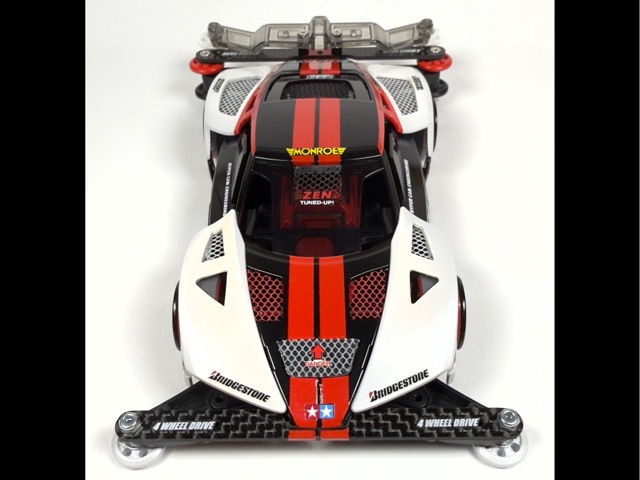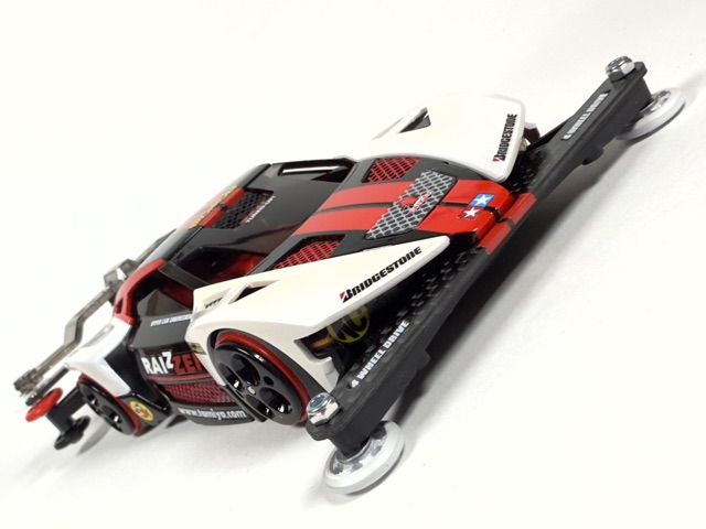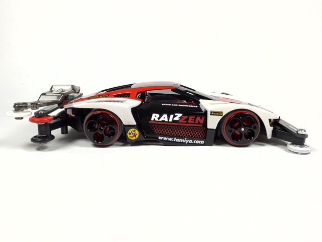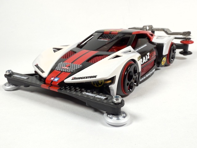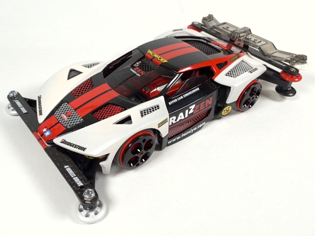 ライザンを大胆に前ちゃん風にカスタム! 前ちゃんの低重心と肉抜き軽量化を意識しつつ、前身・始祖とも言えるアストラルスターのカラーリングで纏めました。 ワンウェイホイールでツライチ・シャコタンはお気に入りのポイントです。
