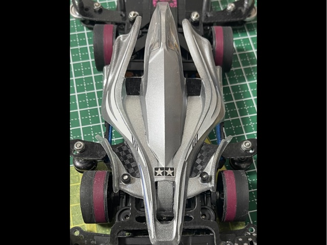 初めて作ったポリカボディです。少しづつ改良してキャノピーを作ってホログラムシールを貼りました。