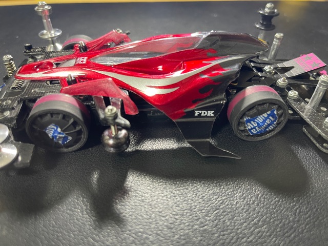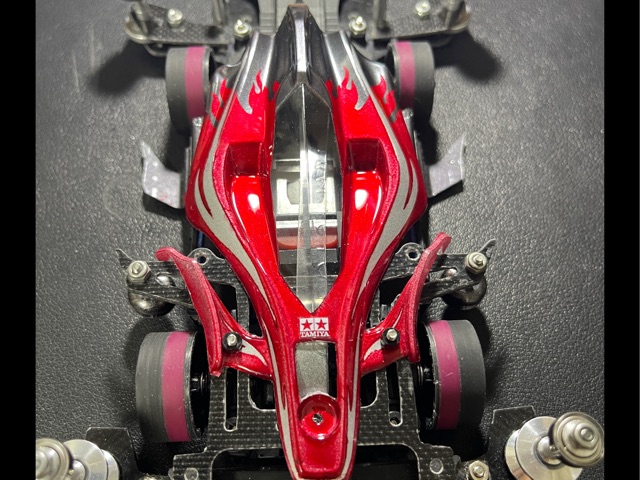 初代のダメージが蓄積されてきた事から2台目のボディを作成。初めてのファイヤーパターンで塗り分けしました。