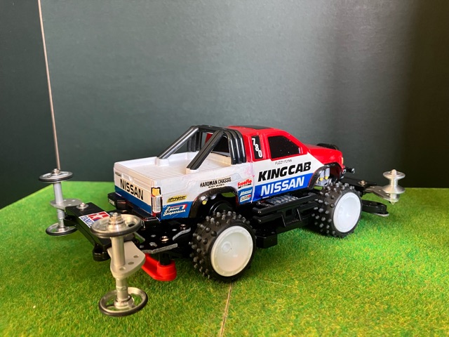 ラジコン版日産キングキャブのボディバランス、カラーリングに憧れを抱いた小学生時代! 長いホイールベースとワイルドミニ四駆ボディも搭載できるARシャーシで、あの憧れを再現してみました‼︎ ボディをマスダンパーとして稼働させ、制振性も確保してます‼︎