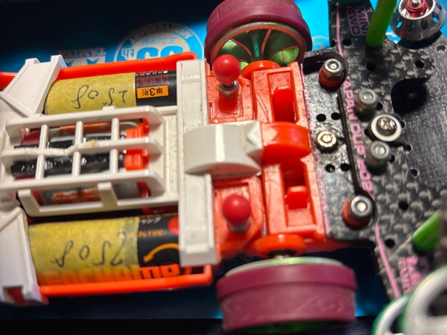 妖精さん ) さて、明日ですよ。こないだ、ダイナホークさんの致命的なお話をされておられましたわよね? わたくし ) 明日だね。こないだ、ダイナホークさんの致命的なことを説明すると言った明日だよ。 よ ) で、何が致命的なのですか?ステー以外はほぼコピーしてると言っても過言ではないシャーシだと思うのですが。 わ ) そうだね、そうなるように作ろうとしていたからね。 よ ) では具体的にどのあたりが? わ ) 写真を見てもらうとわかるかな。君とダイナホークさんではリヤセクションの隙間が違うのだけど。 よ ) 確かに、ダイナホークさんは隙間が広く見えますね。だからといって、そこまで問題になりますの? わ ) トルクが違いすぎてね。湾岸ミッドナイトでも、どこかの話で書いていたけど、トルクの太さというのは速さに直結するんだと思うよ。 よ ) トルクですか?でも、回転数が高い方が喜ばれるのではないのですか、特に界隈は。 わ ) 確かにそういう人達も多いと思うけど、モーターそのもののトルクではなくて、タイヤに伝わっているトルクの方ね。そこが足りない結果として、その回転数まで追いつかない内にカーブが来るのがミニ四駆だと思うと、最高速より加速なんじゃないかな、実際、ホビーゾーンの設置コースぐらいならハイパーダッシュでもライトダッシュでも遜色ないぐらいにしか速度が出ないし、公式コースもそこまで長い最速イリュージョンストレートも存在しないからね。 よ ) まぁ、そういう考えなら異論などはございませんし、あなたのマシンですから好きに作ってもらえばよろしいのですが。ひとつ、気になる事がありまして。 わ ) なんだろ? よ ) その知見によるところの、ダイナホークさんの欠点とは? わ ) 隙間と超速ギヤじゃないかな、あの状態では最高速度前にカーブがきてしまう。とりあえず、今度はギヤを加速に組み直して、君とダイナホークさんで競走してみようとは思う。 よ) それで、ダイナホークさんに負けたらどうなりますの? わ ) 君も青いギヤに載せ替えだろ。 よ ) それはそれで楽しみですわね。 …次回、シンキュウアイマミエルレース、年明けの方向性はどっちだ?