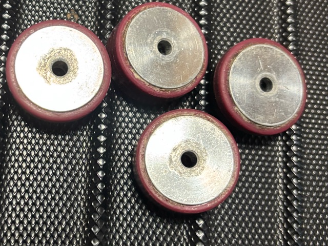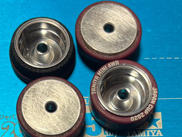 わたくし ) 家の片付けしながらアルミホイールを再利用する作業をしております。 妖精さん ) はい、おつかれ様ですマイマスター。アルミってくすみますよね。 わ ) そうだね。まぁ、悪い癖というか、色々しながら年末の片付けと並行すると、このようにのんびりになるんじゃないかな。 よ ) というか、このアルミホイール。タイヤはローフリで統一されておりますね。当時はトルクが足りなかったのでは? わ ) そうなんだよね。もっぱらスピード負けしてたね。まぁ、きっと今も負けるけども。 よ ) 前後どちらかをハードにして様子を見る。みたいなことはされませんでしたの? わ ) してない。だって、せっかく付けたローフリを剥がして歪んだら使えなくなるし、当時はローフリがすぐ売り切れるし、公式でも正義な感じだったから。 よ ) まぁ、時代には勝てませんからね。で、こちらのホイールはどなたに? わ ) ただ磨いただけで、誰かに履かせたい訳では…あ。 よ ) …?…なんですの?わたくしは安定しておりますよ? わ ) うん、いや。FM-Aに付けてみないか?あれはコーナーで暴れるし、これで多少でもおとなしくしてくれるなら。 よ ) なるほど。でも、彼女はストックなのでは?見たところ、アルミホイールの二つは加工タイヤですわよ? わ ) じゃあ二輪だけなら。 よ ) …既に破綻しておられませんか? わ ) そうかも。やめとくかな。ホイールは磨いたことをもって、満足しとくか。 よ ) そうですわね。別の事でFM-Aさんを速くする方法を考えられては? わ ) また年末年始に難題を。 よ ) それではみなさん、良いお年をお迎えください。 番外) MSシャーシのモーター抑え部品をアップしています。写真で見えている側のでっぱりを削り、12mmのミニホールソーでカーボン、またはFRPのブレーキプレートを穴あけ、それをプラのモーター抑えに合わせて、はみ出た所を削り、削り粉をとっておいて、隙間に入れて接着剤を流しこむ。これでエンドベル側の部品の破損を、ある程度防ぐことが出来るようになるので、MSシャーシの方はお試しください。ただ、スイッチ側のプラ部品については、つけ外しで爪が減る以上、新しいものに取り替えた方がいいと思いますので、諦めてください。