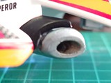 2022年1発目のレイザーバック作りますよ! 2/20 まずはシャーシ。今回はスパイクタイヤにしました。ギヤはトルク重視の茶色スパー。 ボディも少し加工。サイドのマフラー切り飛ばし。後でパイプに変えます。 リヤキャッチャーパーツは左右切ってエンペラーのリヤパーツを仮付け。思ったよりフィット感よし(*>∀<)σ 3/13 エンペラーのライトとライズエンペラーのウイングを仮止め。なんかかわいい💓 2025/11/08 長らく止まっていた制作を再開! シャーシ:サイドのパーツをカット ボディ:後ろのボリュームを落とすためにカット&肉抜き&黒サフ ボディキャッチ:アルミシルバー&ウェザリング その他パーツ:サイドのマフラーは斜めにカットしたパイプの先にレイザーバックのボディから切り出したパーツを接着 ウイングパーツの黄ばみ具合に時の流れを感じてエモい(ノ∀`) 2025/11/15 リヤまわりを仮セッティング サスはクロムイエロー&スプリングをガンダムメッキペン。善きε-(´∀`*) 11/22 塗装&パーツ装着完了 ボディのカラーリングは 白 ピュアホワイト 赤 イタリアンレッド 黄 キャメルイエロー 黒 黒サフのまま 窓は100均の青ラメテープ、サイドマフラーはブレーキセットに入っている両面テープでつけてます。 ライトにレンズパーツ嵌め込んでみましたが少し瞬着白化しちゃいました😥 最後あわてて作ったので粗が酷いですが、3年前の構想が形になったので満足👍️✨️