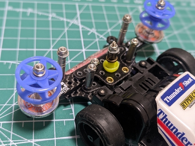 サンダーショットのボディをvzシャーシに載せています! ローラーベース125mmになるよう前後バンパーを調整しています。 車重:電池抜き121.5グラム