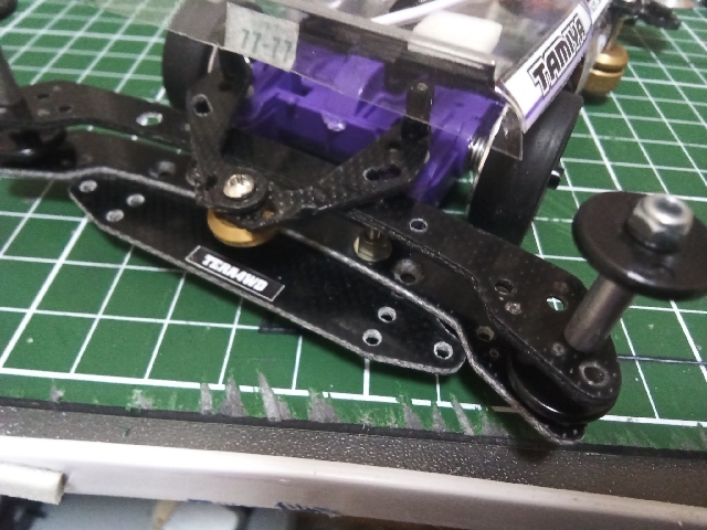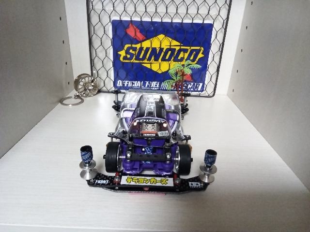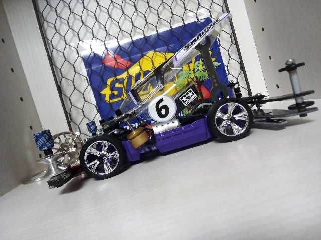 ストッククラスクラス用にしていたエクスフローリーを実戦向けにチューンナップしました。フレキ?なんですか?それはおいしいのですか?実はこれ、リジットMSでございます(歓喜)ほとんどカーボンは使っておらず、FRPに頼っています(金欠)そして、今回初めてのギミックを作りました。その名も「東北ダンパー」です。(これは東北ダンパーなのか、、、?)そして、いつの日かの端材を使ってアンダープレートを作りました。参考にしてみてください。最後に詳細書いておきます。 ●車体/エクスフローリー(紫リジットMSシャーシ) ●ギミック/提灯、東北ダンパー ●総額/4500円