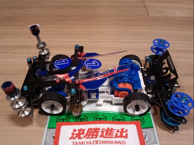 マシン重量 168.7 コース 1レーン 結果 1グループのなかで2位 1位取れれば優勝決定戦だった マシンの説明 フロント AT 左2段アルミローラー2個 右 ゴム2段アルミ リヤ リヤアンカー 2段プラローラー ディシュアルミローラー