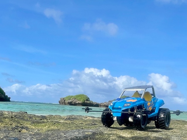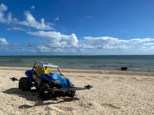 沖縄の砂浜を走らせるため製作したミニ四駆です