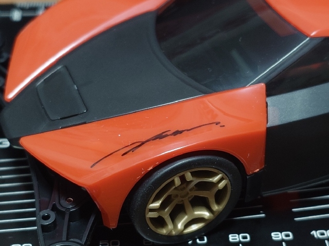 根津先生サイン入り限定マシン爆誕!! …となるはずが、パーツ洗浄でサイン消してしまうという大失態をしでかした俺😵 塗らないつもりだった赤パーツも指定色で塗装して説明書どおりに組み上げました ん〜これも善き( ´∀`)bグッ!