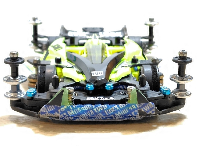 気に入っている、いつもの塗装と切り方でボディ作り直しました。久々のスプレー楽しかったです フロント、リアともにバンパーだけ変更出来るように調整したので、Ms1台でバンパー付け替えて遊んでます Meと合わせて計2台。いろんな管理が楽になったので良かったです